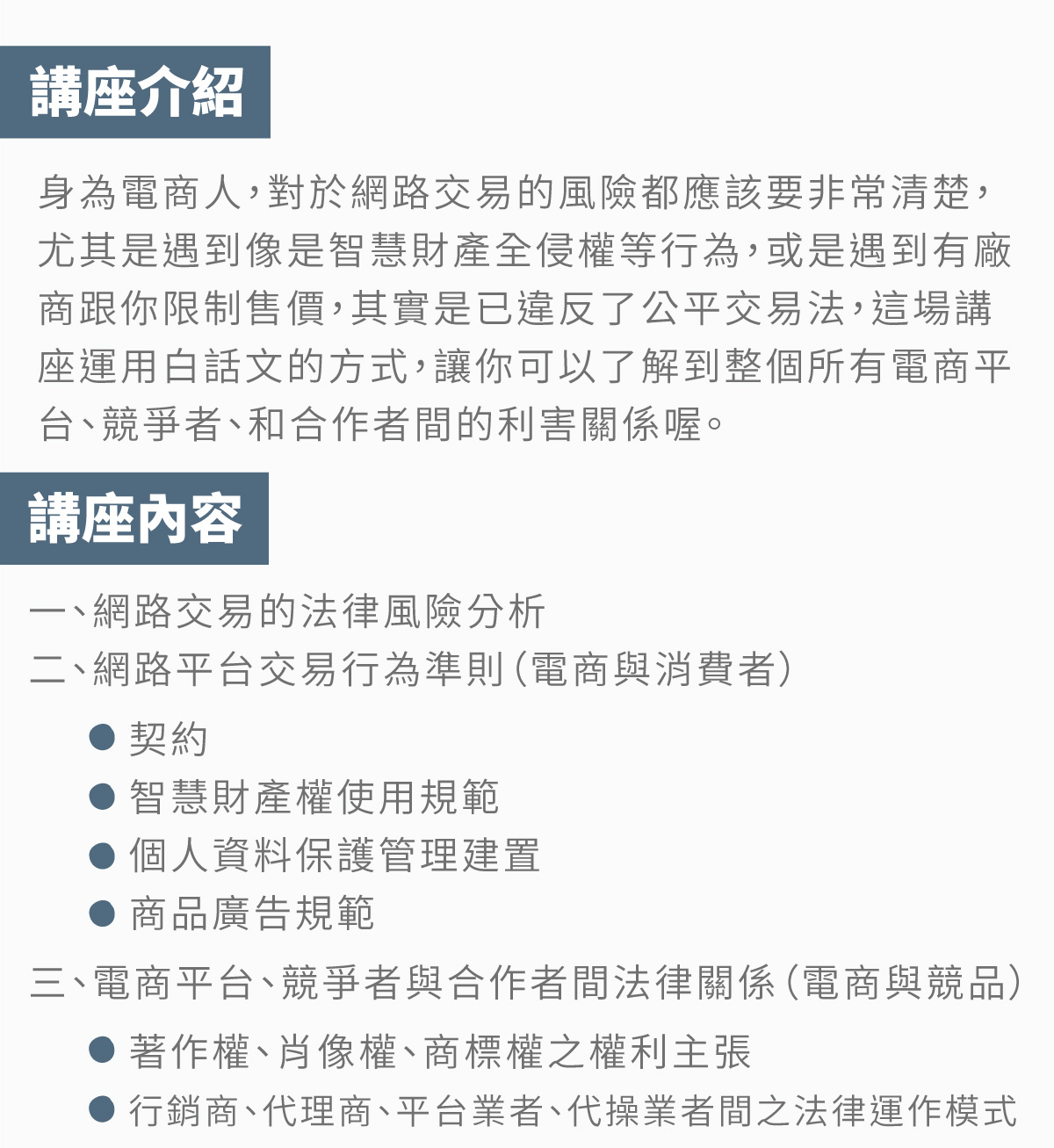 【50堂電商名人指標講座 EP11】電商經營須知的法律坑