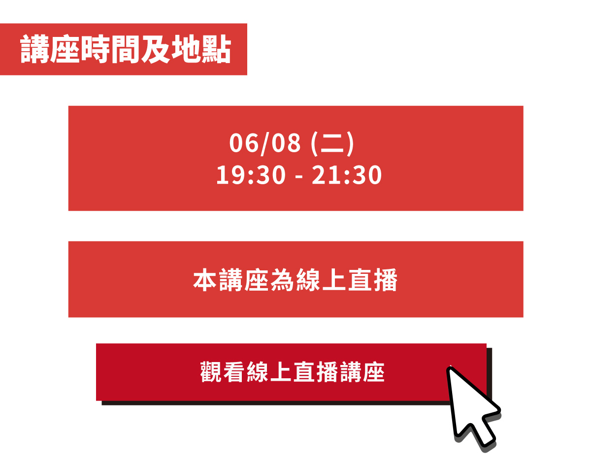 線上直播學習影片僅保留 7 天,建議可在課程時間同時觀看,才可以參與課程隨時跟老師 QA 問問題喔!部分課程僅開放直播不保留影片,提供課程連結時會同步說明。
