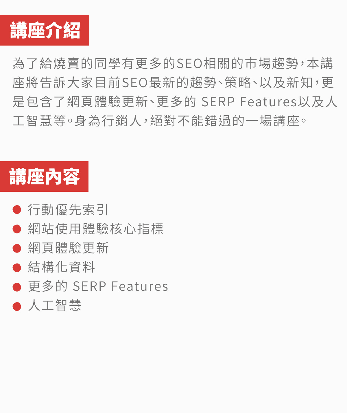 課程前:部分課程將提供課前學習,讓您能快速地進入課程。