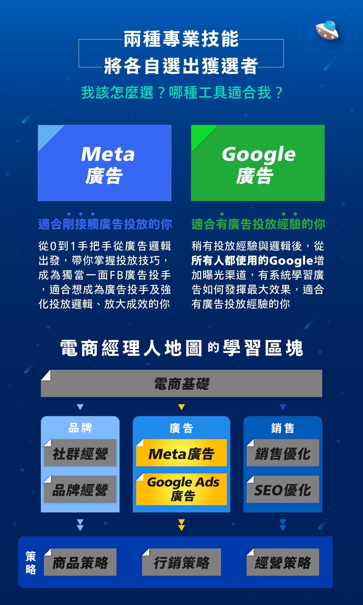 Meta 廣告學程(56H) $55,000 提供一名 / Google Ads 廣告學程(55H) $75,000 提供一名