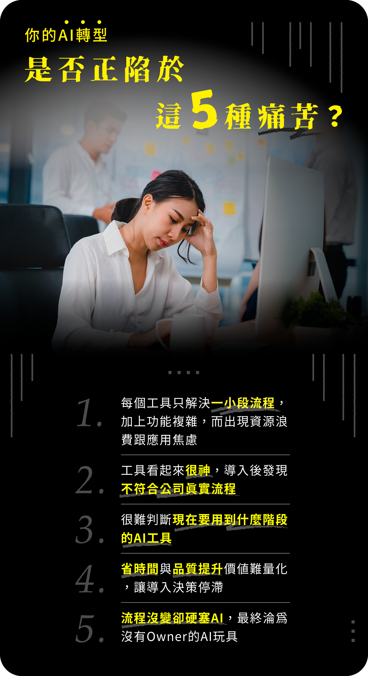團隊有人在用 ChatGPT、Notion AI、各種自動化工具,真正卡住的不是技術,而是: