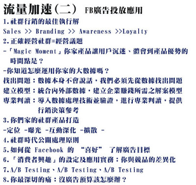 過去操作Facebook廣告,都是以第一堂課中所提到的AISAS模式為主軸,甚至官方說明也都以此規劃為建議,針對消費者心理階段性不同的感受,投放不同屬性不同目標的廣告內容,在來到課程的第五天……