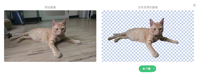 現在請看看這隻叫小呆的橘貓,原圖明顯背景跟他毛色接近,但一秒不到就被去背成左圖了!