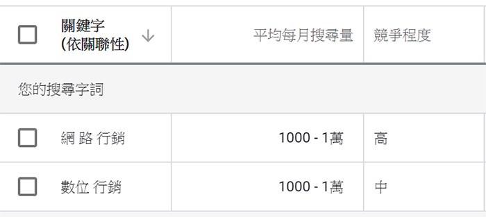 - Google Ads的關鍵字規劃工具