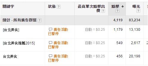 這時候最好的做法正是直接對” 夜市小吃” 以及 “夜市美食 ” 這兩組關鍵字進行關鍵字廣告投放,並在投放一段時間後,分析/觀察這些字組的曝光量,同時你還能夠測試每個字組之間的點閱率以及搜尋者對不同廣告文案的點閱狀況如何,再藉由你從關鍵字廣告中所學到的一切,應用到SEO上。