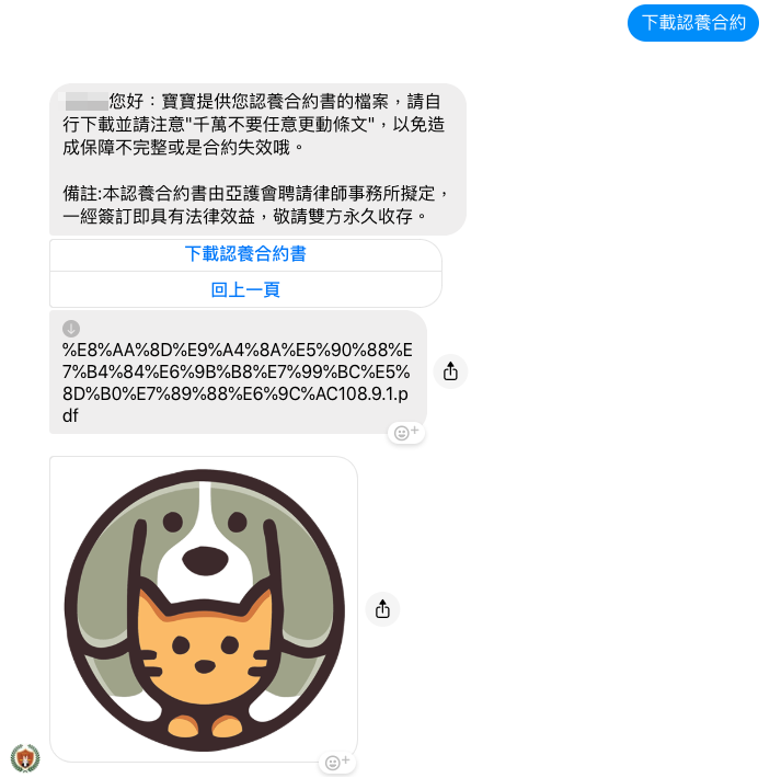 讓粉絲獲得具法律效力的「認養合約書」,並搭配一鍵下載、一鍵分享按鈕設定,以達到大量曝光及傳播的第一步。