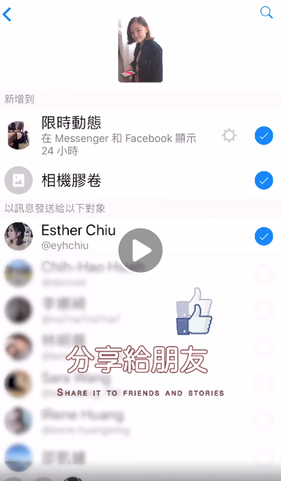 用AR擴增實境拍下美照後,可以直接在 Messenger 將照片分享至限時動態或傳給好友,消費者得到自拍+社交+血拼的滿意體驗,同時迅速提高商家自然觸及率,打造出雙贏局面。