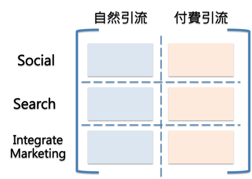 - 付費引流:泛指透過「購買曝光版位而直接獲得」的付費流量。像臉書廣告、搜尋聯播網、或像KOL業配。