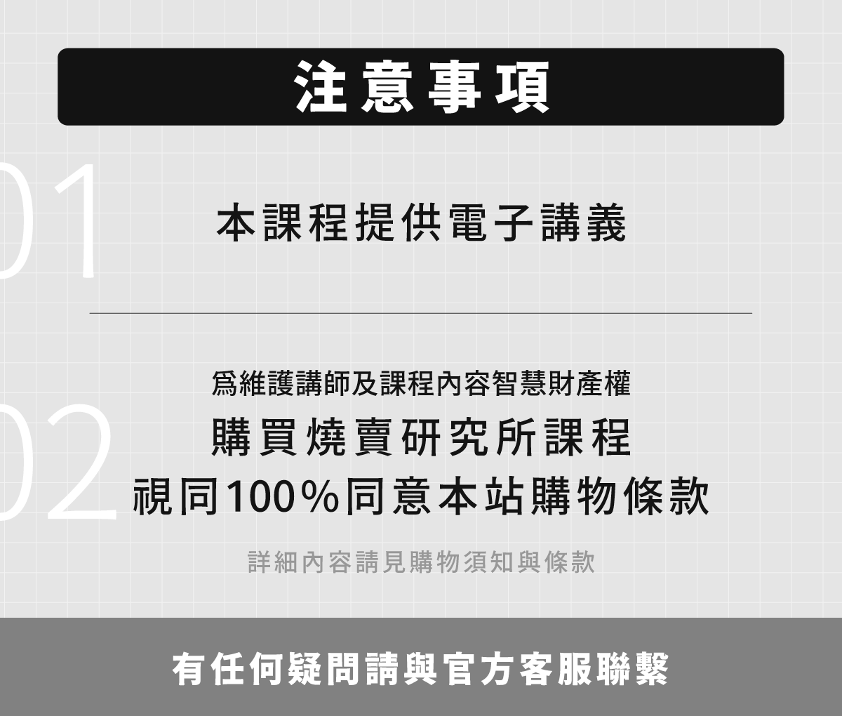 燒賣研究所提供現場上課及線上學習管道,為維護講師及課程內容智慧財產權,購買燒賣研究所課程,視同100%同意本站購物條款。
