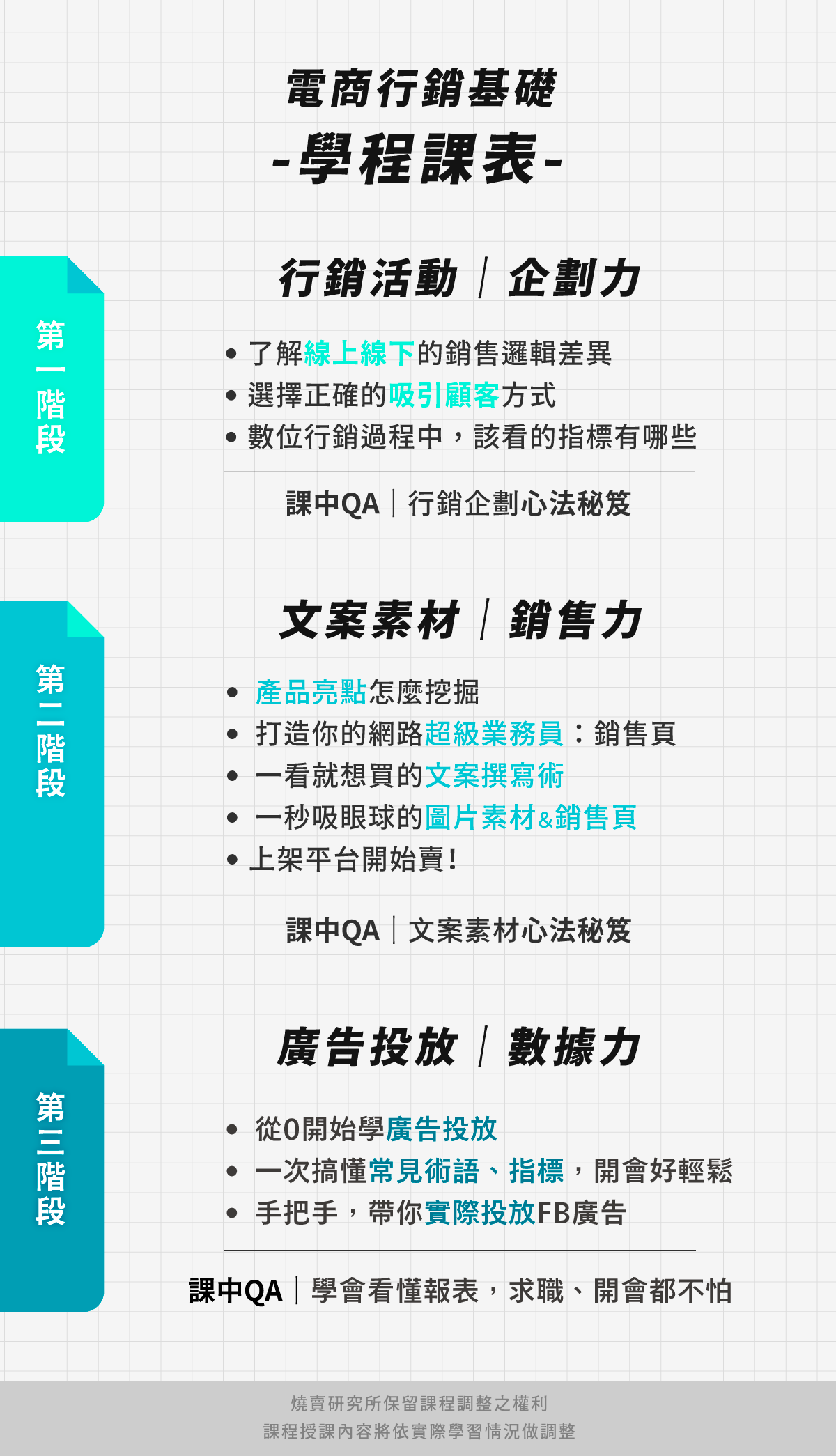 - 若需再次購買最新紙本講義,酌收課程10%費用,請於該課程商品頁加購貨與燒賣夥伴、粉專聯繫。