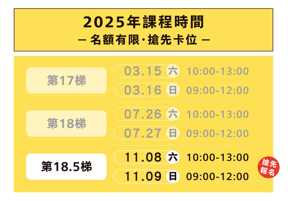 ▹ 課程目前梯次時間無法配合,請問下次開課能通知我嗎?
