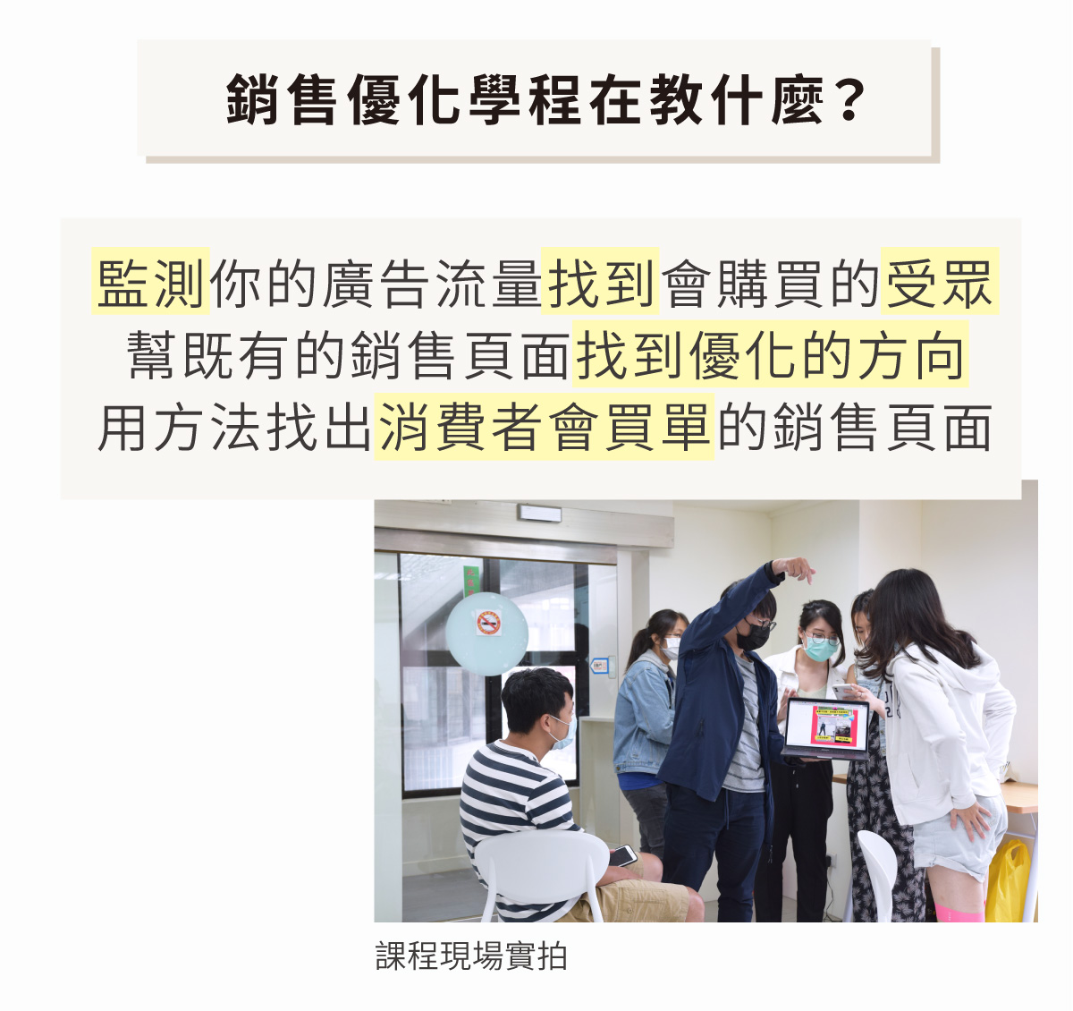 若為數位行銷實作課程,皆有電腦操作,需自備電腦及充電線。