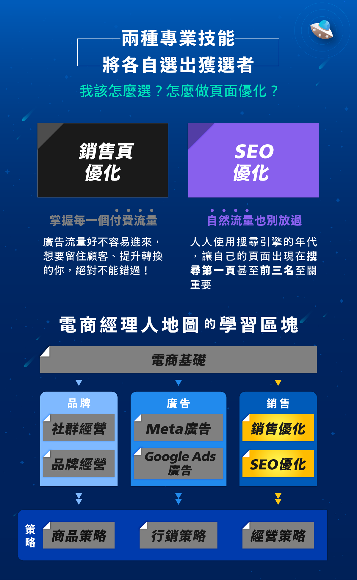 帶你了解電商網站初始規劃,從使用者、與優化頁面相關的指標與工具。課程試閱