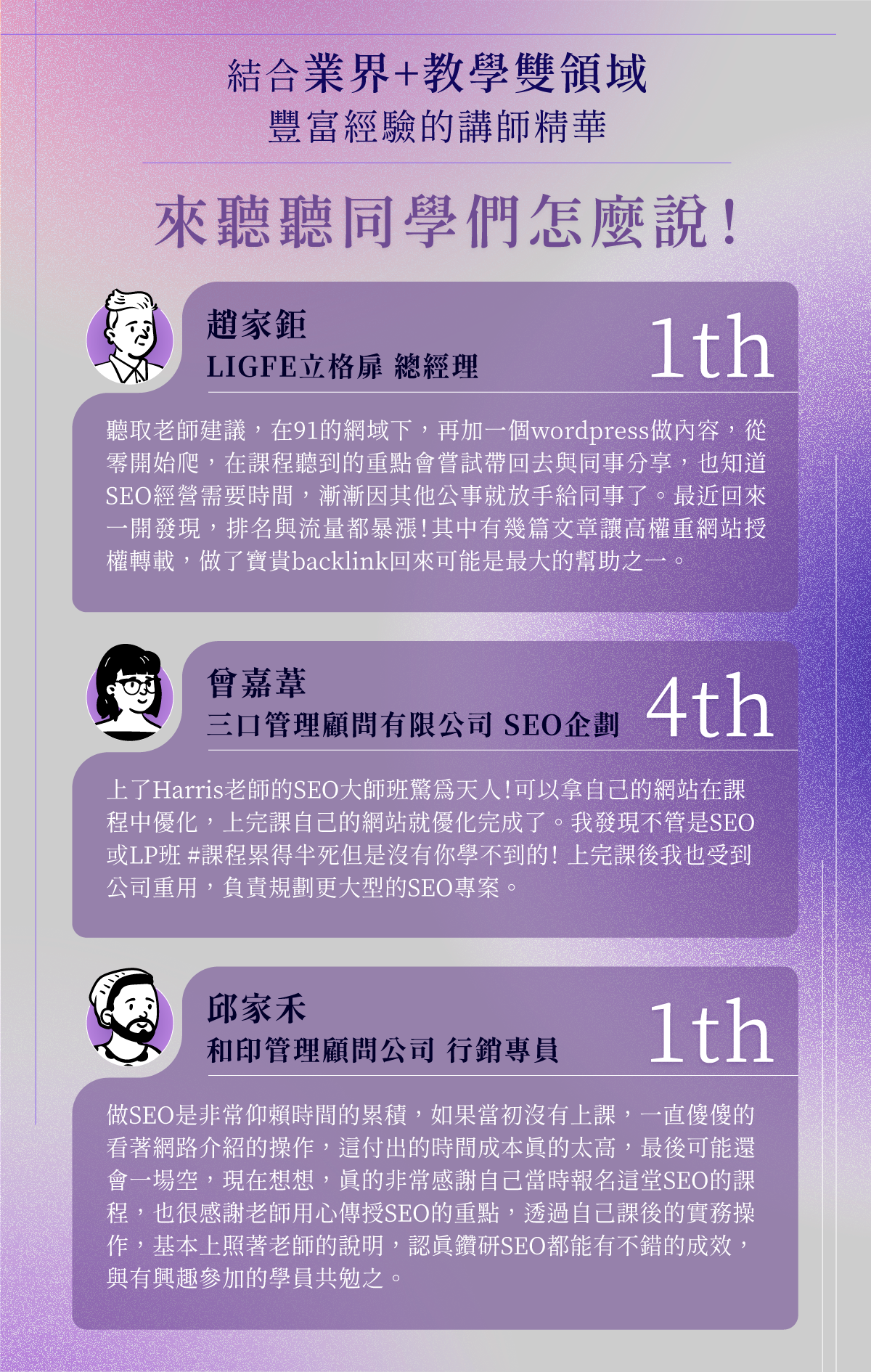 【數位+實體混成】Harris SEO大師班:讓專業企業顧問帶著你做SEO (62.5H)