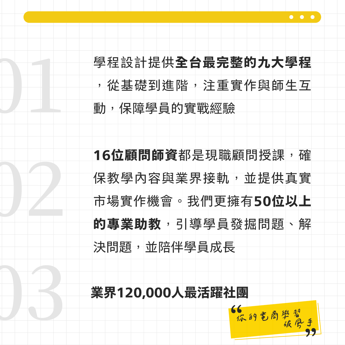 | 內容課 | 發文公式 文案模板 排版技巧 選題靈感 內容日更策略 | 內容變多了 詢問沒變多 有人看沒人買 | 你教的不是「發更多」 而是「每一篇都往成交走」: 曝光→信任→私訊→成交 | 內容很多 但無法變現的人 |