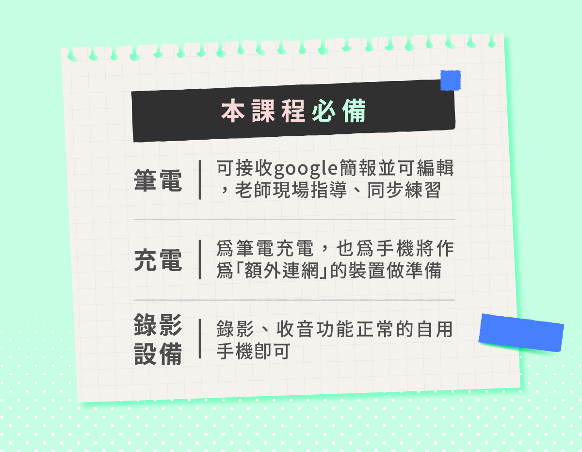 - 回訓資格:您需購買過本課程,且為已完訓之正式學員。